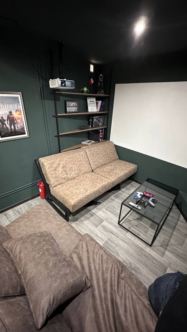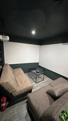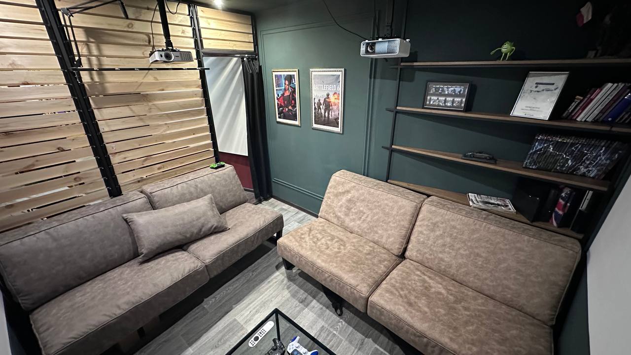 Комфортные диваны делались под заказ из самых премиальных и комфортных материалов с правильным углом специально для игры на проекторах.